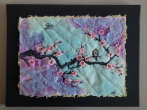 « Félicité ondoyante » réalisé en 2021 – art textile sur feutrine 30.5 x 30.5 cm support toile
